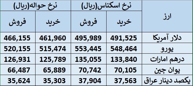 هر اسکناس دلار آمریکا به 49 هزار و 598 تومان و حواله دلار نیز به 46 هزار و 615 تومان رسید.