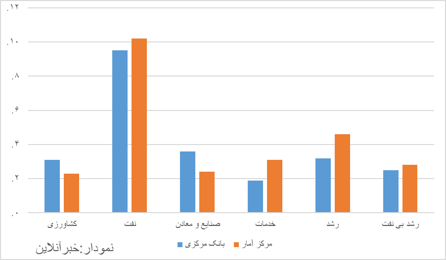 یکی از اشتراکات اساسی دو مرجع رسمی محاسبات آمار کشور، در نقشی است که برای رشد بخش نفت در کل تولید ناخالص داخلی قائل هستند؛ در واقع هر دو این مراجع بر این امر صحه میگذارند که بدون رشد بخش نفت، رشد اقتصادی به طور محسوسی کاهش مییابد.