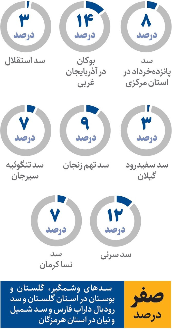 به گزارش نسیم اقتصاد به نقل از همشهری آنلاین، سال آبی جاری در حالی در هفتههای پایانی قرار گرفته که وضعیت منابع آبی آن اصلا مطلوب ارزیابی نمیشود و به خصوص سدهای وشمگیر، گلستان و بوستان در استان گلستان و سد رودبال داراب فارس و سد شمیل و نیان در استان هرمزگان در وضعیت بحرانی یعنی بی آبی کامل قربار گرفته اند.