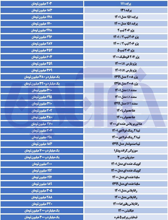 بررسی نوسانات قیمتی در بازار خودرو در یک هفته گذشته حاکی از افزیش قیمت خودروهای تیبا و کاهش قیمت خودروهای پژو و دنا است.