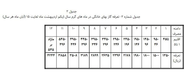 همچنین گازبهای مشترکانی که در ماههای بسیار سرد سال، مصرفشان حداکثر 70 درصد الگوی متعارف (سقف پله 3 جدول پلکانی) باشد، مشمول 100 درصد تخفیف و مصرف آن دوره برای مشترک بدون هزینه (رایگان) خواهد بود. در مقابل، تعرفه مشترکان پرمصرف بخش خانگی، یعنی از پلکان 4 به بعد افزایش یافته است.